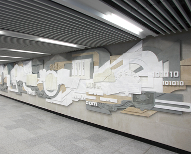 首页 出行空间M地铁系列M地铁 • 艺术壁画及雕塑 4号线 正文 国家图书馆站 | 书的海洋 2019-08-27 大中小 中国古代书籍装帧从简装书算起有3000多年的历史,而后依次为帛书、卷轴装书、旋风装书、经折装书、背包装书和线装书等。作品以书籍的演化为主要表现元素,着重表现“国图四宝”,即《赵城金藏》、《敦煌古卷》、《永乐大典》、《四库全书》。